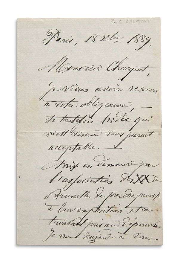 L.A.S. «Paul Cezanne», Paris 18 décembre 1889, à Victor CHOCQUET | 2 pages et demie in-8.