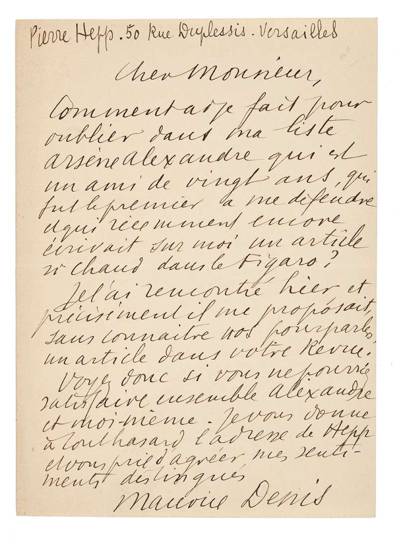 L.A.S. «Maurice Denis», à un directeur de revue | 1 page in-12.