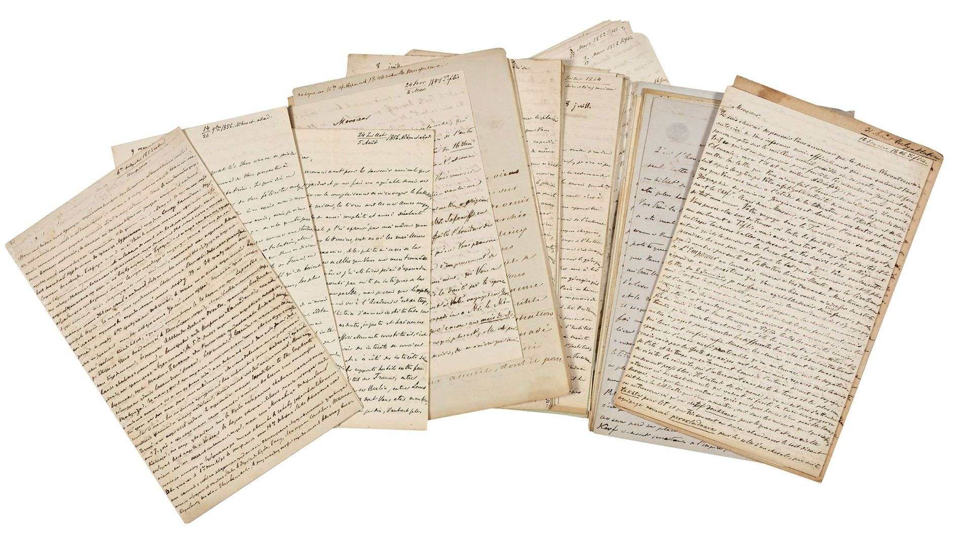 45 L.A.S. «N. Khanikoff» (une suivie d'une L.A.S. d'Édouard Dulaurier) et 2 L.S., Tiflis, Febrize, Nihmet-Abad, Paris, Chevreuse etc. 1846 - 1875, [à l'orientaliste Xavier BROSSET] | 78 pages formats divers.