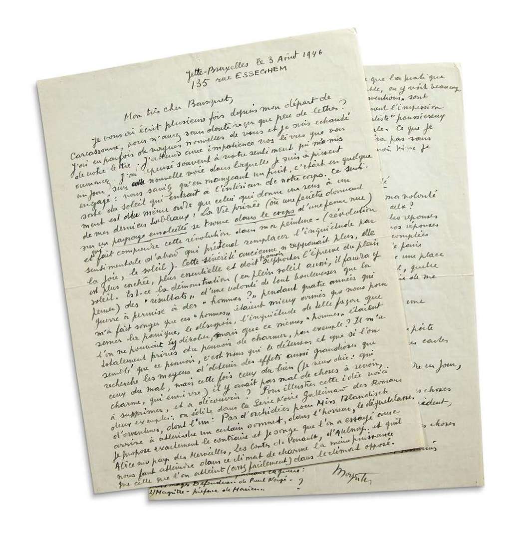 L.A.S., Jette-Bruxelles 3 août 1946, à Joe BOUSQUET | 2 pages in-4.