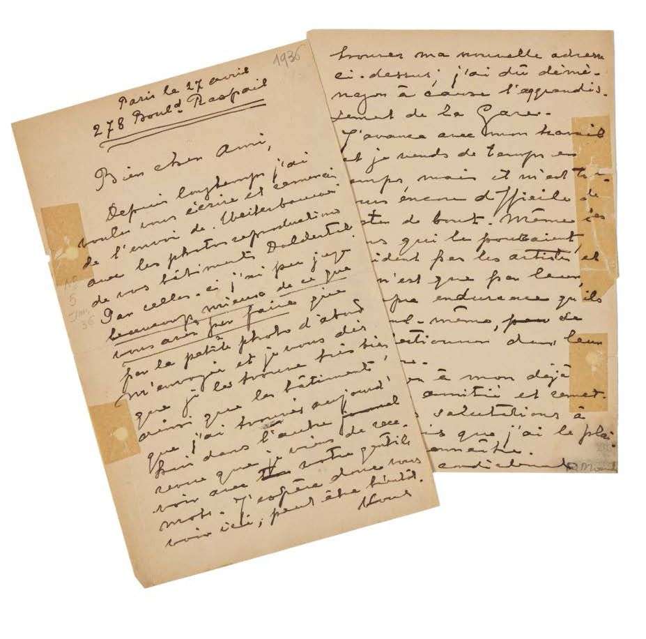 L.A.S. «P. Mond», Paris 27 avril [1936], à Alfred ROTH | 2 pages grand in-8 (perforations réparées au scotch) | en français.
