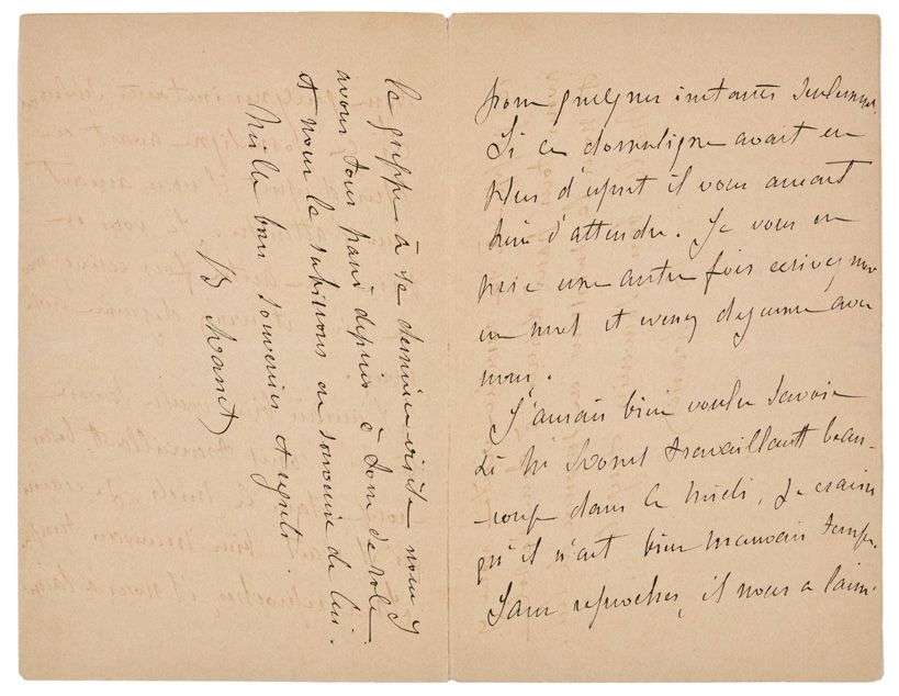 L.A.S. «B. Manet», Samedi 25 février [1888, à Alice HOSCHEDÉ] | 3 pages in-8 (légère fente au pli central).