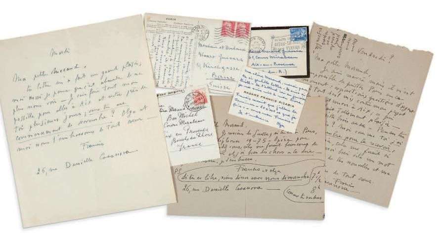 Deux des lettres et les deux cartes postales rédigées par Francis Picabia sont également signées par sa femme Olga. «Je suis navré mais il m'est impossible de quitter Paris en ce moment: expositions, questions d'argent, enfin tout est contre mon projet d'aller te retrouver à Aix, ce qui m'aurait fait tellement plaisir. Olga le regrette bien aussi».
