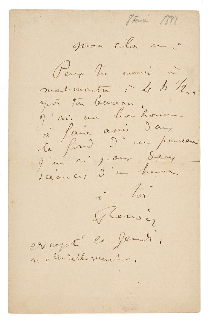 L.A.S. «Renoir», [8 février 1888], à un ami | 1 page in-8.