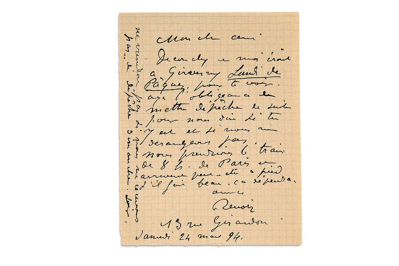 L.A.S. «Renoir», 13 rue Girardon 24 mars 1894, à Claude MONET| 1 page in-12.