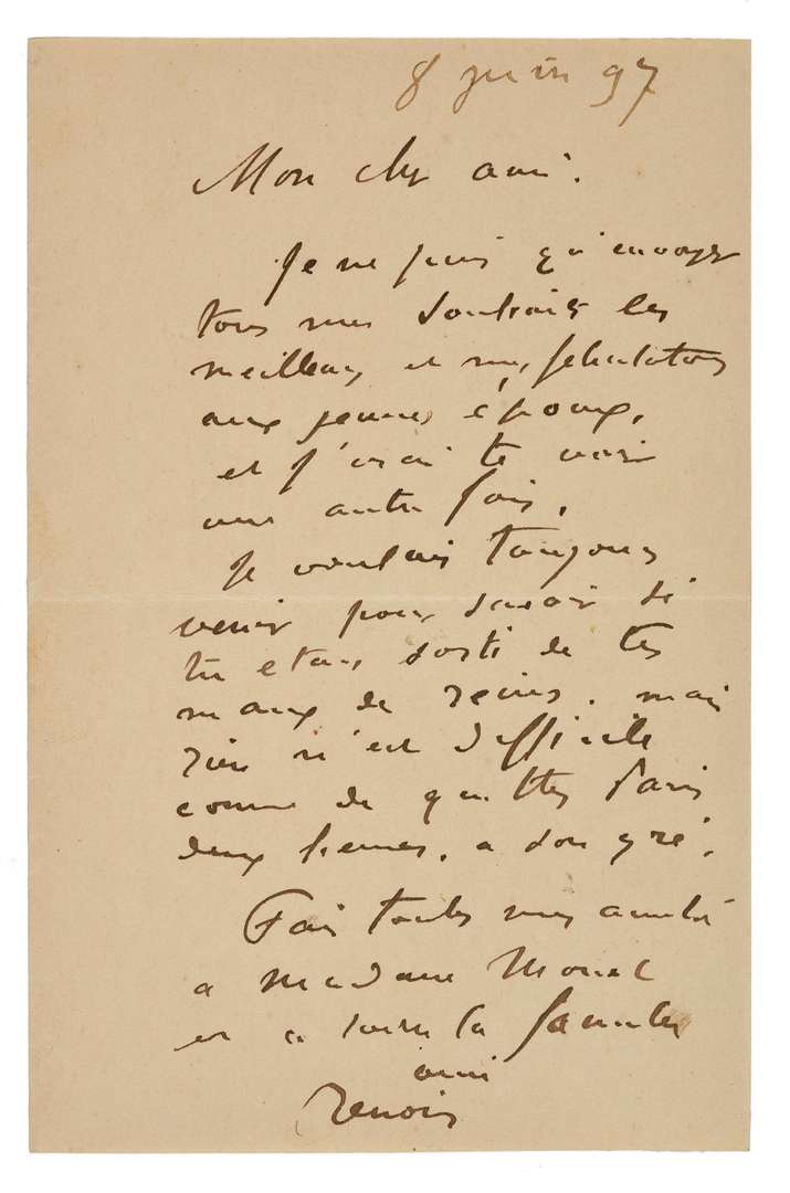 L.A.S. «Renoir», 8 juin 1897, à Claude MONET| 1 page in-8.