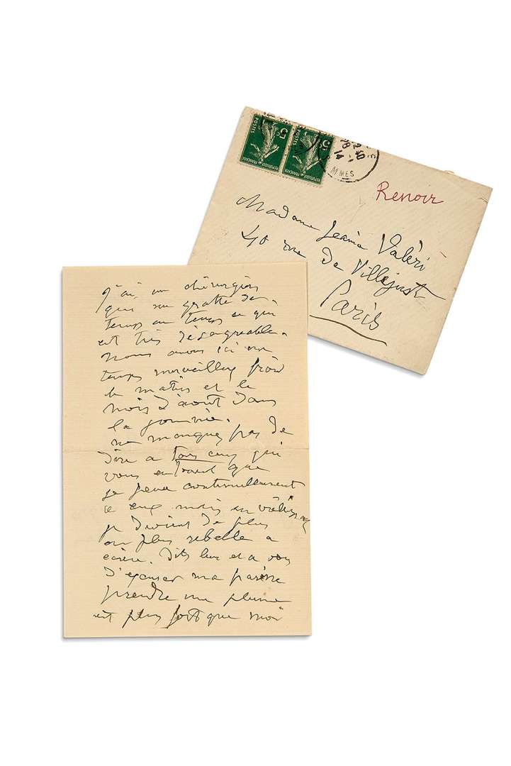 L.A.S. «Renoir», Nice 27 janvier 1914,à Madame Jeannie VALÉRY | 3 pages in8, enveloppe.