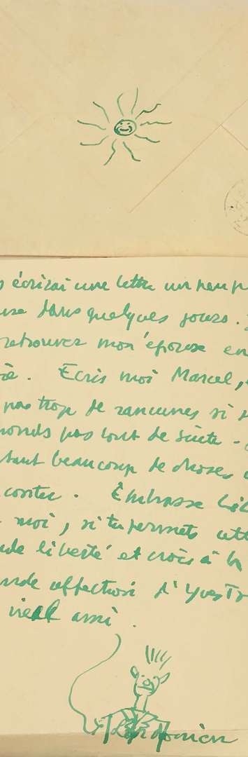 Plusieurs lettres sont contresignées, notamment par Max Ernst et son épouse Dorothea Tanning (1), par les écrivains surréalistes Georges Hugnet (1) et Jehan Mayoux (2), ou par les deux épouses de Tanguy Jeannette Ducrocq (2) et Kay Sage (2)...