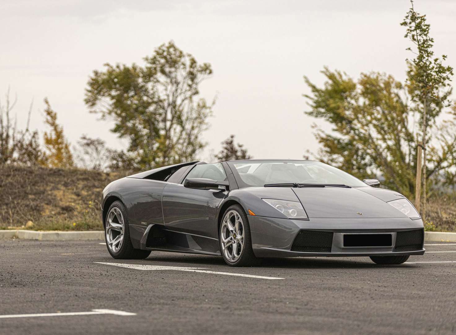 Sublime et exubérante, la Lamborghini Murcielago roadster fait incontestablement partie des monuments de la haute couture automobile. Dérivée du coupé du même nom, elle fut présentée en 2004 au salon de Genève et est entrée en commercialisation en fin d’année à l'occasion du salon de Paris, où elle trônait, seule, sur le stand de la firme italienne. Grâce à son design très travaillé réalisé par Luc Donckerwolke, elle conserve des lignes acérées comme celles d'un avion furtif, perpétuant ainsi des valeurs propres à Lamborghini. Le pare-brise et les vitres latérales présentent une ligne de toit très basse et droite, permettant un déploiement aisé de la capote qui s'intègre alors parfaitement avec la ligne du roadster dont les éléments aérodynamiques ne se découvrent qu'en cas de nécessité, soit pour refroidir le bouillant V12, soit pour ajouter de l'appui à grande vitesse. Le capot moteur est également inédit et vu de dessus, sa forme fait penser à une aile d'avion. On note également la présence de nouvelles jantes de même qu’une double sortie d'échappement centrale inédite avec une section plus grande que sur le coupé. Le modèle que nous présentons fut vendu neuf équipé de la rarissime boite de vitesses mécanique à six rapports par la concession Lamborghini de Stockholm en Suède le 25 mai 2007 dans une teinte Grigio Avion avec en option la sellerie intégrale en cuir gris foncé ton sur ton en lieu et place de la finition en alcantara et le filet anti-remous lui aussi optionnel. Autre commande spéciale ajoutant à l’exclusivité du modèle, l’ensemble du treillis du châssis est en carbone en remplacement d’une finition standard en acier. L’ossature en carbone encadrant le moteur est une pièce d’orfèvre exceptionnelle qui mérite d’être admirée. Produit à seulement 899 exemplaires dans le monde, on estime à seulement 2 % le nombre de Murcielago roadster livrés avec la boite mécanique, soit 18 exemplaires ! Ce roadster fut ensuite acheté par son second propriétaire en France en janvier 2009 alors qu’il comptabilisait 7 000 km. Collectionneur attentif et méticuleux, il prit bien soin de toujours l’entretenir au sein du réseau de la marque avec notamment le changement préventif de l’embrayage en mai 2015 lorsque la voiture comptabilisait 27 293 km. Présentée dix ans plus tard aux enchères chez Aguttes, la voiture comptabilisait 28 200 km et fut vendue à un collectionneur français tombé en extase devant les lignes de cet avion furtif! Un check-up de la mécanique fut réalisé juste après l’achat chez Lamborghini Paris. Depuis, près de 1 000 km ont été parcourus, toujours cheveux au vent.