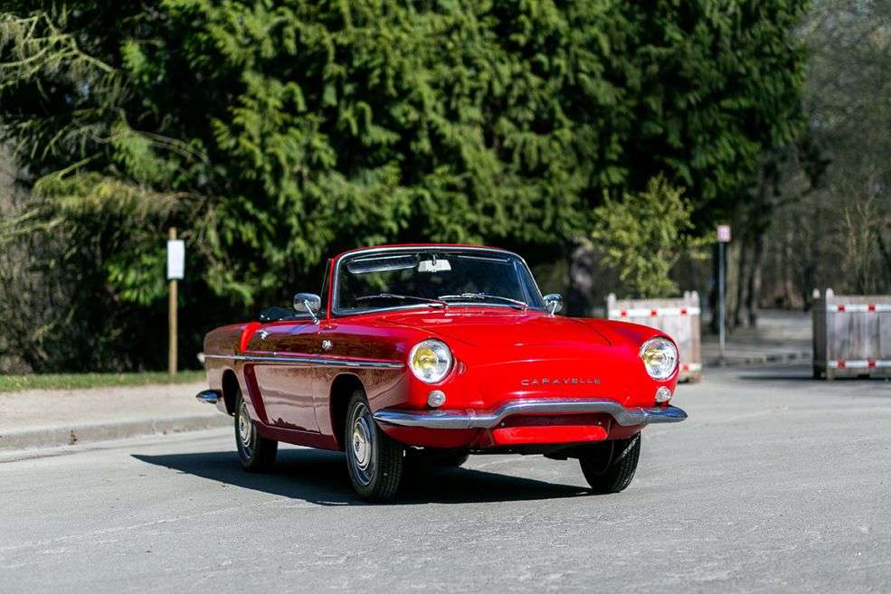 La Renault Caravelle cabriolet que nous présentons est équipée d'un moteur 1100. Elle est en bon état cosmétique et semble avoir bénéficié d'un voile de peinture relativement récent. A l'intérieur, les assises en cuir noir présentent très bien et témoignent elles aussi d'une restauration récente. Un essai routier nous a permis d'apprécier les qualités routières du 4- cylindres 1 100 cm3 : la prise en main de la boite de vitesses est facile, l'efficacité du système de freinage est rassurante et les montées en régime sont agréables bien qu'un petit réglage de carburateur reste à prévoir. L'historique est inconnu, mais l'état général de cet exemplaire laisse à penser que les derniers travaux effectués sur l'auto ont été faits dans les règles de l'art. Très agréable à conduire, ce petit cabriolet attachant constitue une partenaire idéale pour vos balades sur les petites routes de campagne.