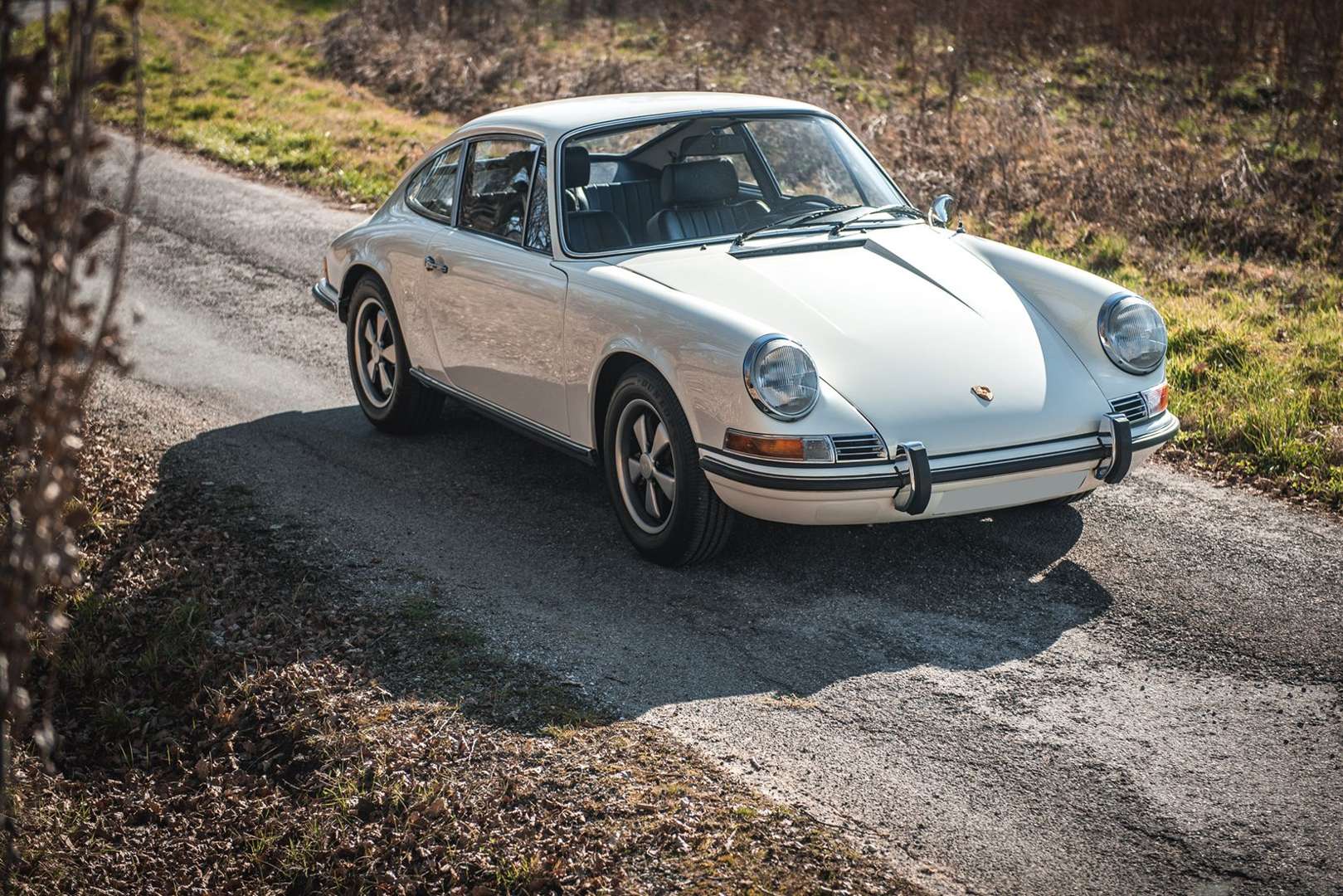 Apparu au Salon de l’Automobile de Francfort 1963, le concept de la Porsche 911 alors appelé 901, fruit de l’imagination de « Butzi » Porsche, le fils de Ferry Porsche, est commercialisé dès 1964. La première version de ce coupé 2+2, à la ligne de toit fuyante si caractéristique, dispose d’un moteur inédit de six-cylindres à plat de 2 litres de cylindrée développant 130 chevaux. Ce n’est que 2 ans plus tard, au salon de Paris 1966 qu’est présentée la 911 S, version vraiment sportive de la 911 avec son moteur en aluminium de 2 litres porté à 160 chevaux et ses célèbres jantes Fuchs. Mais en 1967, c’est toute une gamme qui est déclinée avec la « T », la « 2L » et la « S » qui présente le même moteur Flat 6 de 2 litres de cylindrée avec des puissances différentes. Deux ans plus tard, la cylindrée passe à 2.2 litres. La 911 E positionnée au-dessus de la « T » fournit désormais 155 chevaux grâce à l’injection. Elle se dote d’un capot moteur en aluminium et sa tenue de route est améliorée grâce à l’ajout de barres stabilisatrices ses quatre freins à disque et son nouveau boitier de direction. La gamme continuera d’évoluer avec ses déclinaisons T, E et S en fonction des augmentations de cylindrée successives.