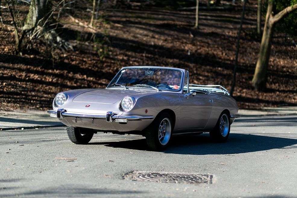 La Fiat 850 que nous présentons fait partie de la deuxième série. Son état de présentation actuel témoigne de la restauration de grande ampleur dont il a bénéficié ces dernières années. Du point de vue cosmétique, sa peinture est en très bel état, et les jantes typées Abarth qui l'équipent sont du plus bel effet. Souhaitant faire de longs voyages, l'ancien propriétaire a également fait ajouter un porte bagage sur le capot arrière. L'intérieur est dans un bel état, le volant typé Abarth a été refait en 2020, les tapis de sols sont beaux, la capote semble neuve et son maniement est facile. Seul bémol, les assises ont mal vieillis et mériteraient un soin supplémentaire pour offrir à nouveau le confort qu'on en attend. Niveau mécanique, la voiture fonctionne très bien : les travaux de restauration du moteur, du système de freinage, des suspensions et de la boite de vitesse ont étés effectués en début de l'année 2021. Notre essai routier a pu nous confirmer que la voiture est réellement agréable et amusante à conduire, le moteur est souple tout en restant nerveux, le maniement de la boite de vitesse est facile, les freins sont efficaces… Il est encore possible de s'offrir un spider italien de caractère à budget raisonnable. Avis aux amateurs.