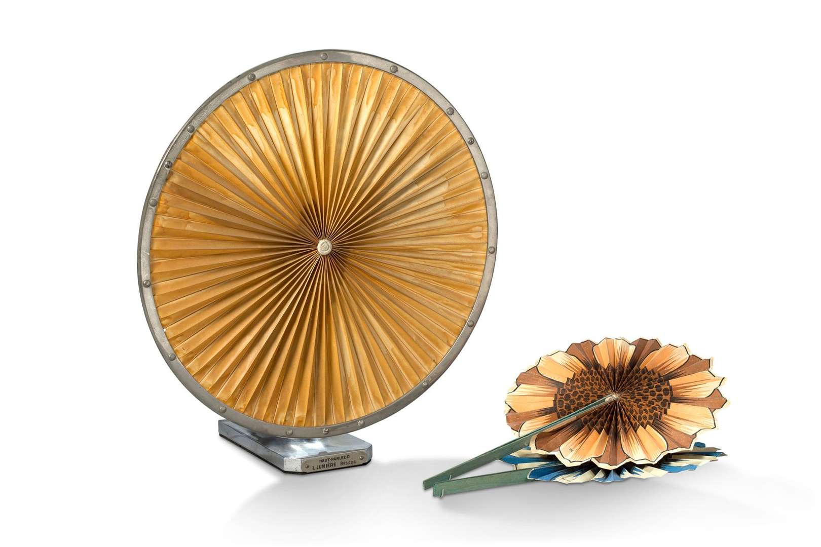 Dans sa boîte d'origine. On y joint deux éventails à l'origine de l'invention du haut-parleur Lumiere