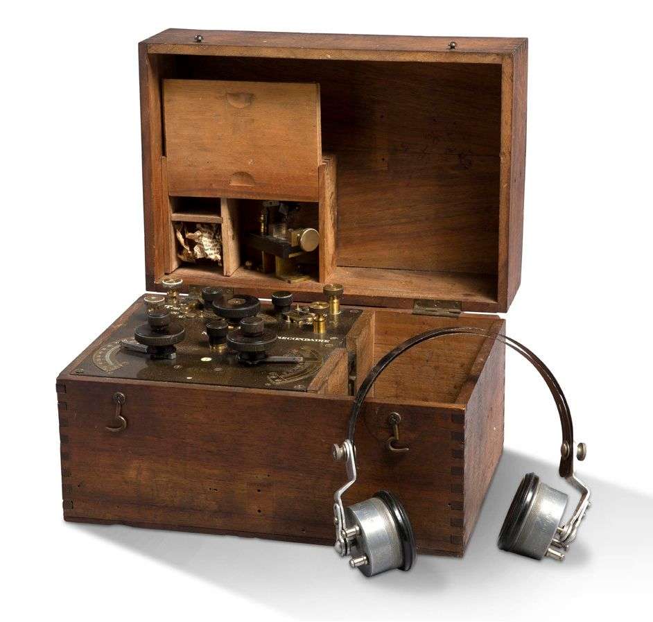 Poste radiotélégraphique militaire dans sa caisse en bois