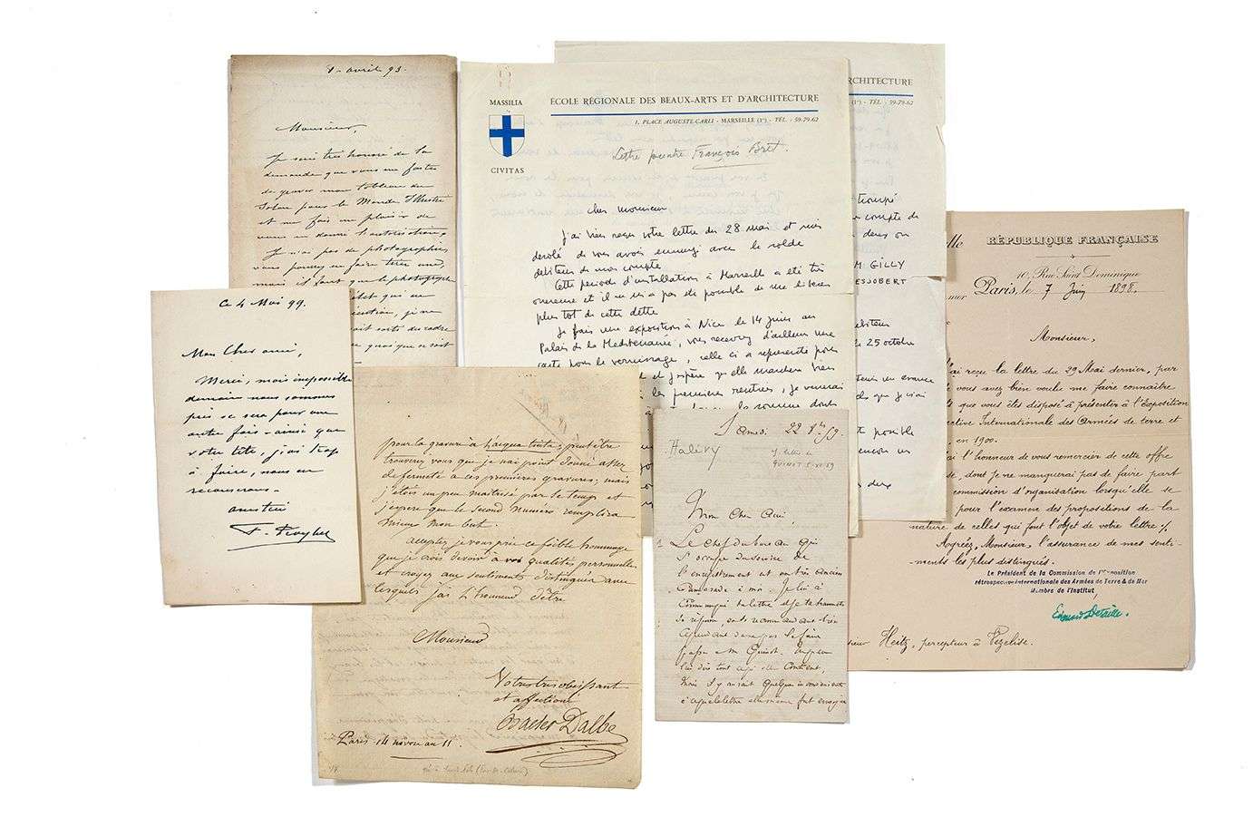 Ensemble d'environ 40 lettres ou de cartes autographes signées ou tapuscrites de BABOULET, BAZAINE, BELLANGE, BESNARD, BERAUD, BOUGUEREAU, BOURDIL, BONNAT, CAIN, CARO-DELVAILLE, DETAILLE, GERVEX, REQUICHOT, HALEVY et divers.