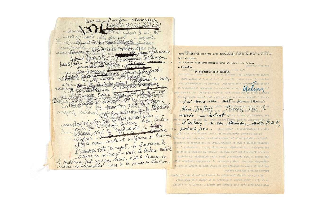 2 pages in-4 (ratures), annotations autographes au sujet de la lecture d'un livre, dont il dit l'avoir lu d'une traite sans pouvoir s'en détacher, il complimente l'auteur.