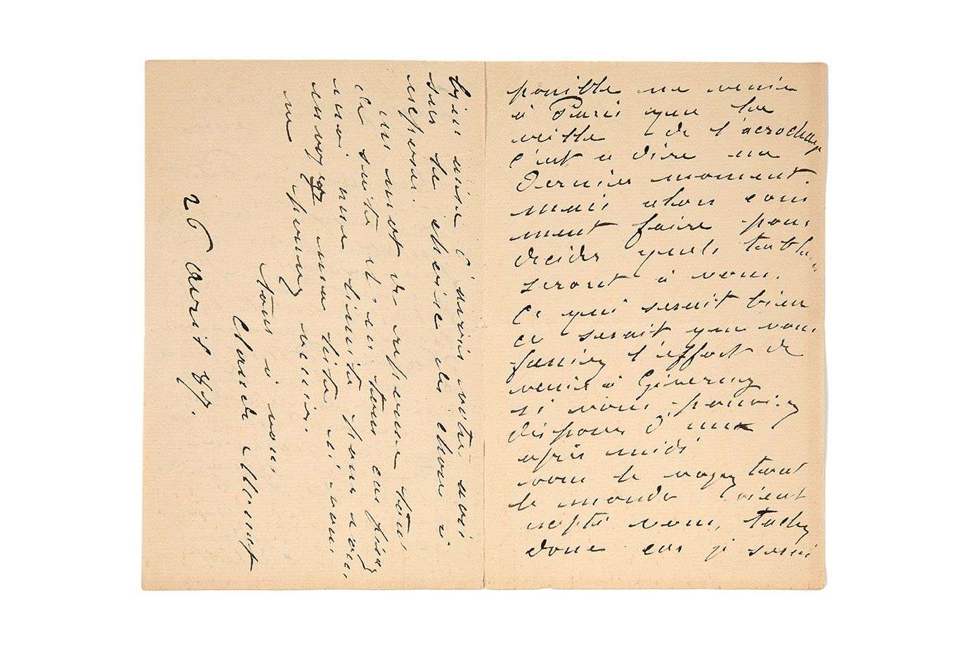 L.A.S. "Claude Monet", Giverny, 26 avril 1887, adressée à Georges PETIT.