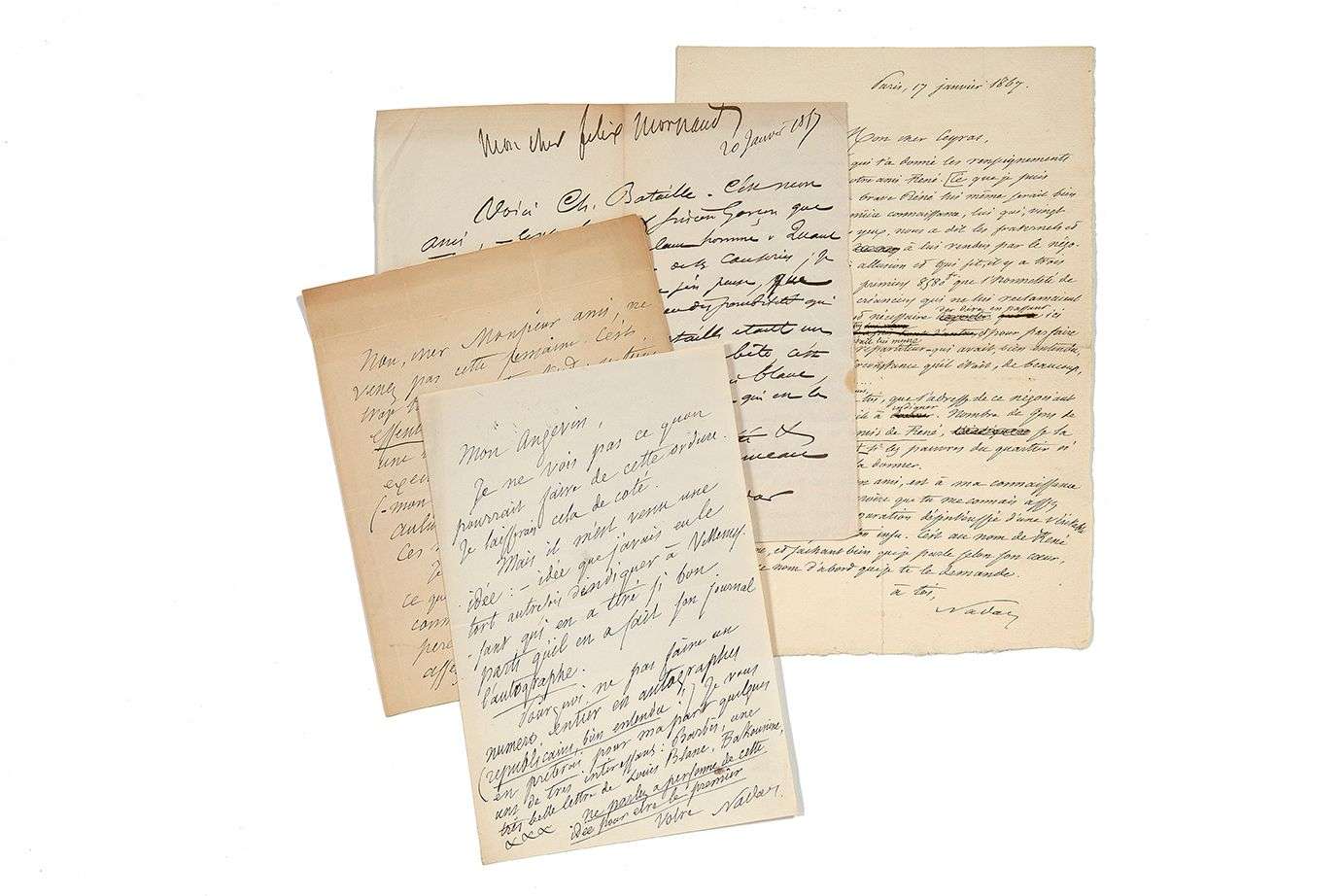 4 L.A.S. "Nadar", [Paris, 1867].