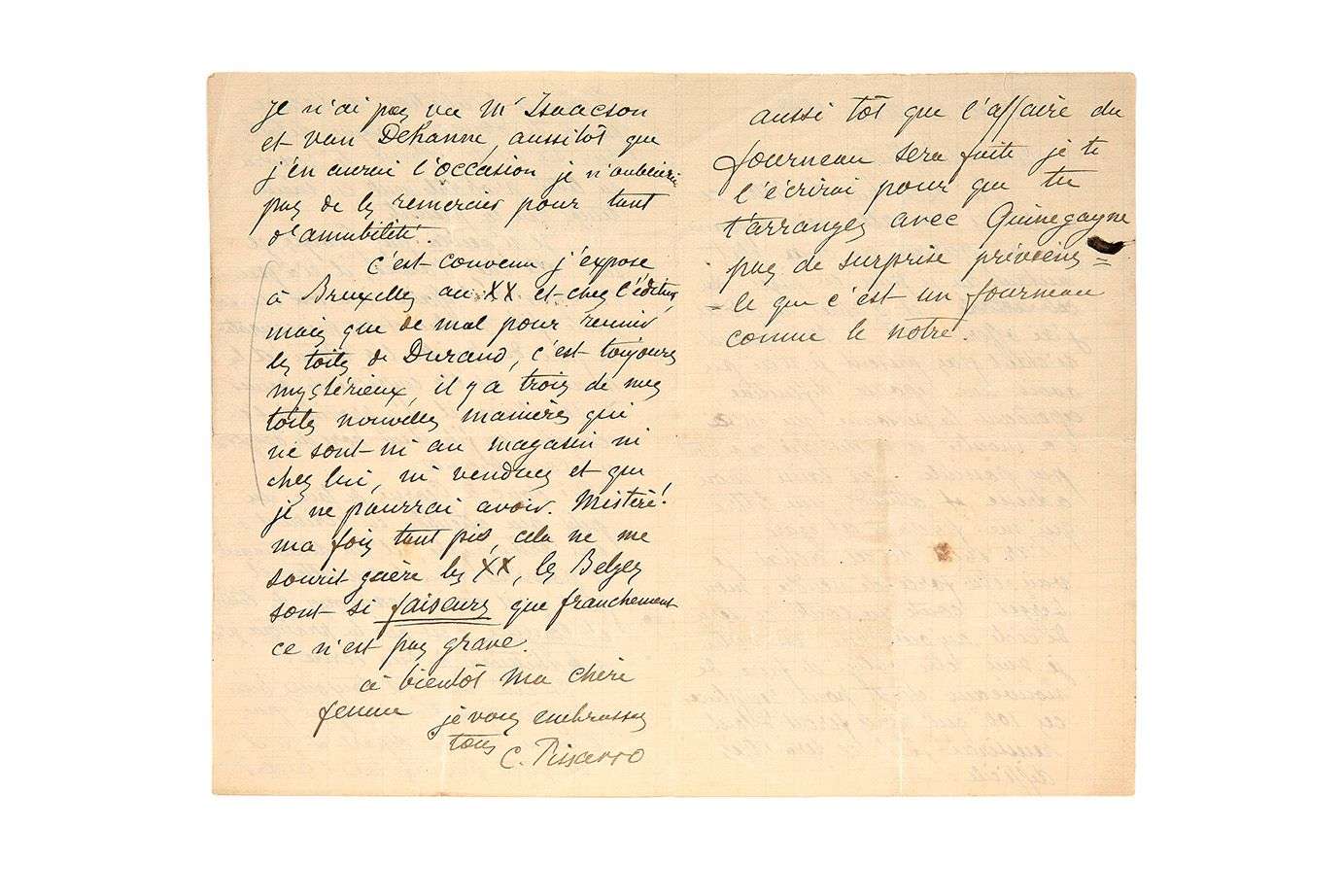 L.A.S."C. Pissarro", Paris, 10 novembre 1888, adressée à sa femme Julie.