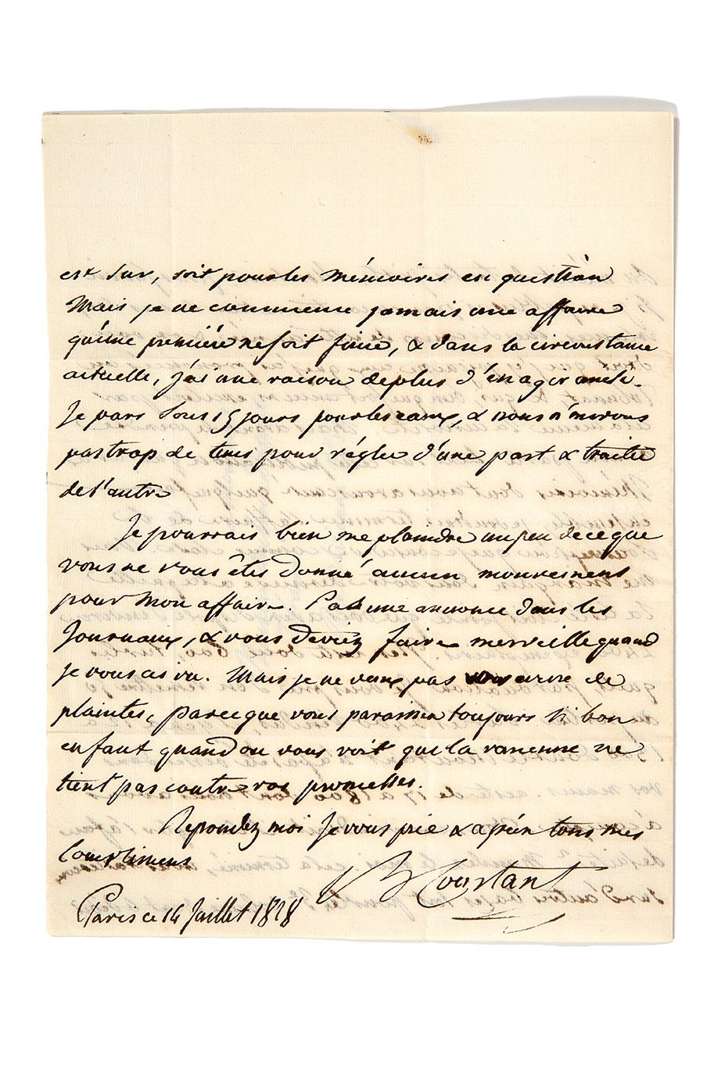 L.A.S. " BConstant", Paris, 14 juillet [1818], adressée Ambroise DUPONT, libraire. 2 pages in-4 (pliures, manque dû au cachet).