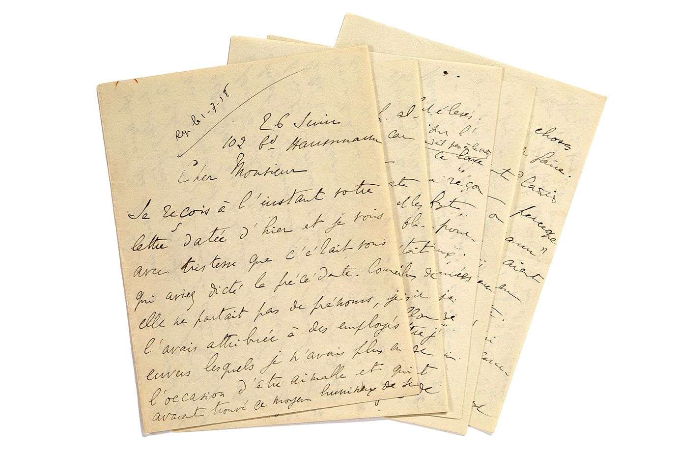 Exceptionnelle et très longue lettre inédite de Marcel Proust, adressée à Gaston Calmann-Lévy, à propos de des Plaisirs et des jours.