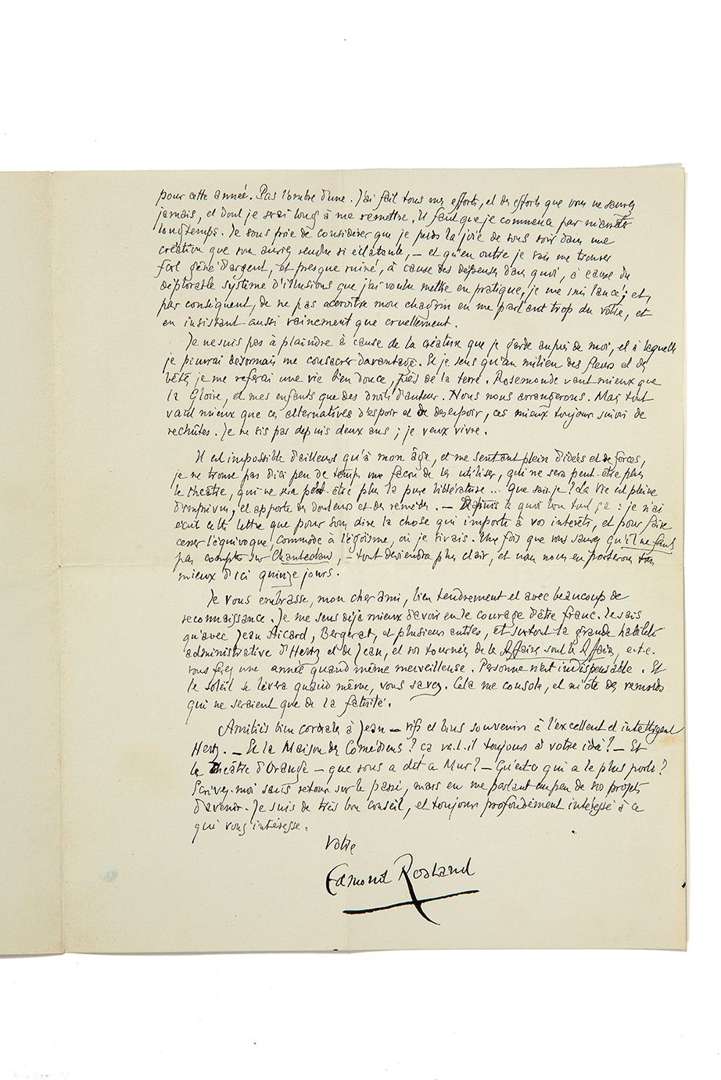 Lettre dans laquelle Edmond Rostand abandonne sa pièce de théâtre "Chantecler".
