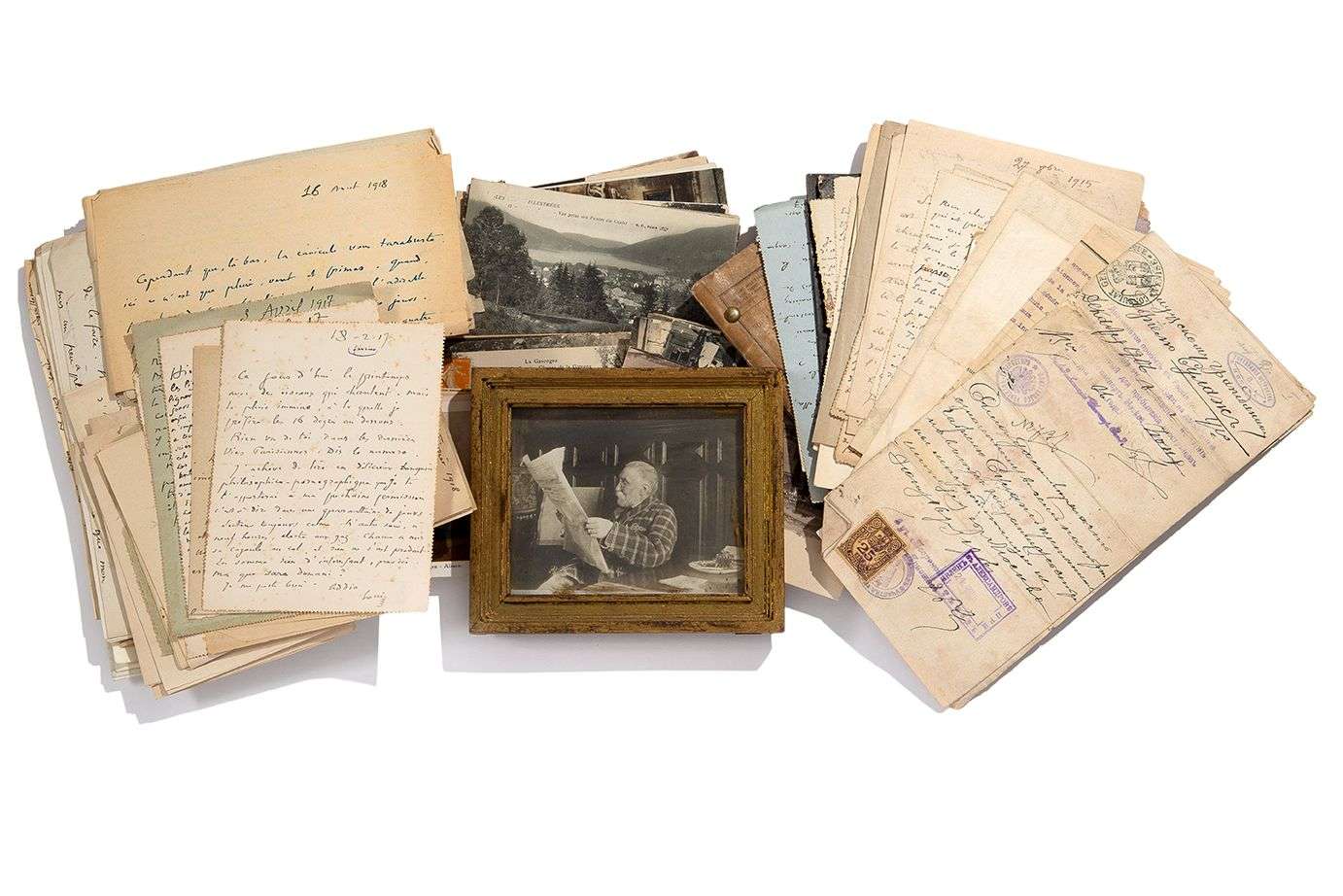 Environ 90 L.A.S. et 110 cartes postales a.s. à lui adressées par son frère Louis, 1910-1925, principalement des années de guerre. Documents divers...