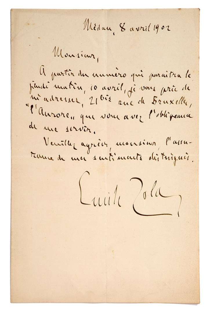 Il prie son correspondant de lui adresser au « 21 bis rue de Bruxelles, "L’Aurore" que vous avez l’obligeance de me servir », à compter du numéro du jeudi 10 avril...