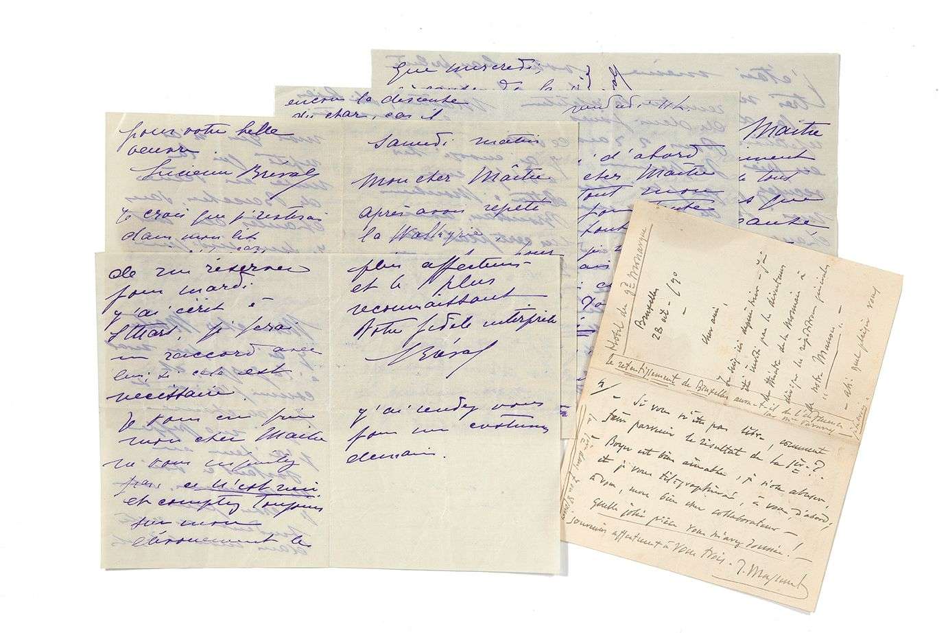 L.A.S. ''J.Massenet", Bruxelles, 28 octobre 1890, adressée à ''Monsieur Philippe Gille''.4 pages in-16, deux pages oblongues et quelques lignes oblongues dans les marges.