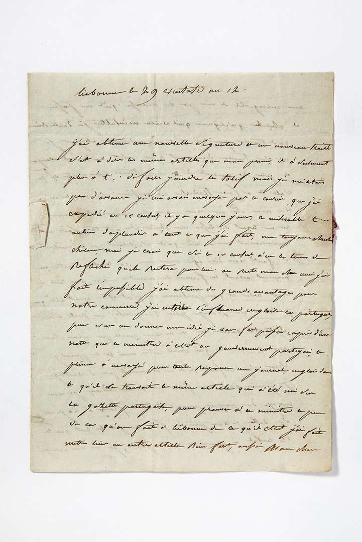 L.A.S. "Lannes", [Lisbonne]. 3 pages in-4 (manques dûs au cachet).