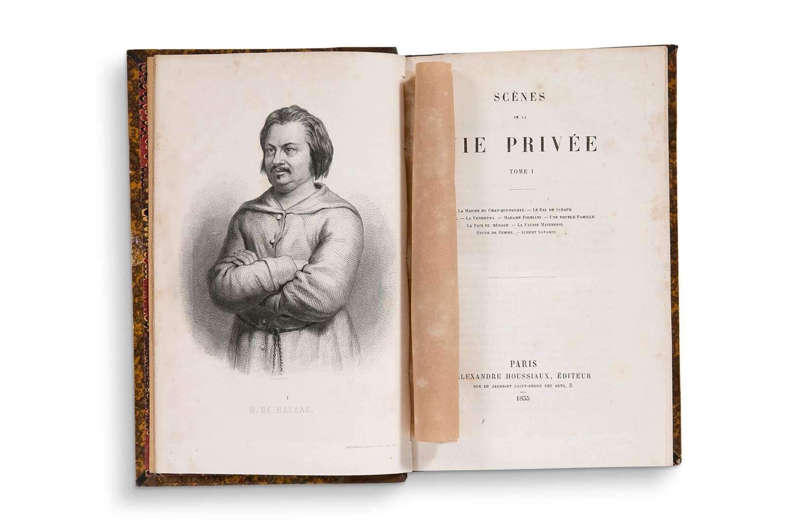 La première édition des Oeuvres complètes publiées par Houssiaux n'a été imprimée entre 1842 et 1848 en 17 volumes qu'après avoir été revue et corrigée par Balzac, avec des remaniements importants par rapport aux éditions originales. Du fait du décès de Balzac en 1850, les derniers ouvrages n'ont été publiés qu'entre 1853 et 1855 en trois volumes et ont été vendus par l'éditeur en complément des 17 premiers volumes provenant de plus ou moins anciennes rééditions. Ainsi, tous les tomes du présent exemplaire sont à la date de 1855, sauf 7 qui sont datés 1858 (tomes 3, 13, 14, 15, 16, 18 et 19).