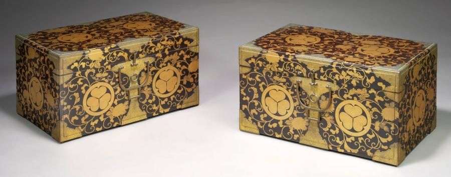Paire de coffres décorés du Mont d'Aïmion Edo L: 63 cm P: 41 cm H: 35 cm