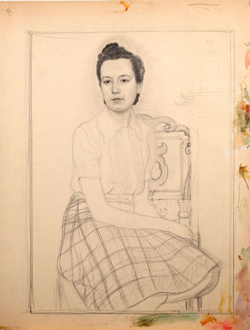 Portrait de jeune femme à la jupe à carreaux, vers 1941