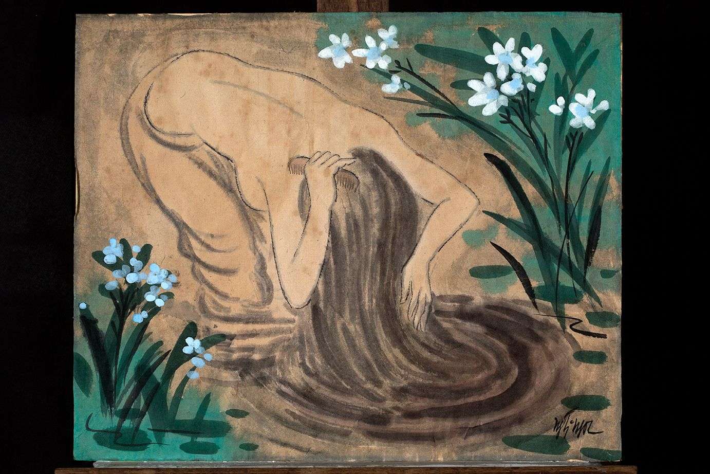 Baigneuse Encre et aquarelle sur papier, signée en bas à droite 41 x 50.5 cm - 16 1/8 x 19 7/8 in. Ink and watercolor on paper, signed lower right Bon état général malgré des rousseurs éparses. Le papier a été renforcé à certains endroits par du scotch. Good general condition despite some sporadic stains. The paper has been reinforced in some place with scotch tape.