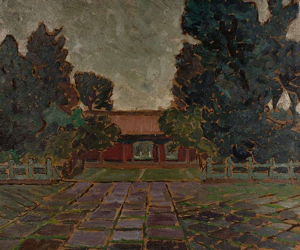 Paysage au temple à Hanoï Huile sur carton 46 x 55 cm - 18 1/8 x 21 5/8 in. Oil on cardboard Provenance Collection privée, Paris Très bon état général. Very good condition