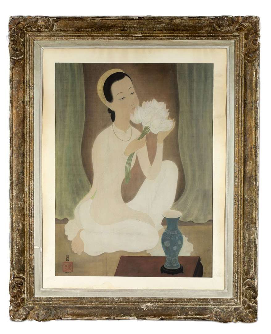 Jeune femme arrangeant des f leurs de lotus, 1943