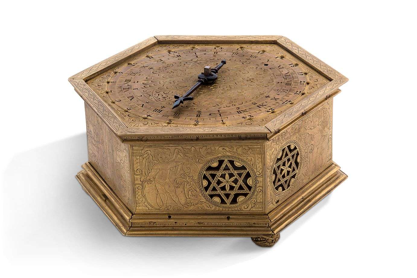 En cuivre doré et finement gravé avec sonnerie fonction réveil.