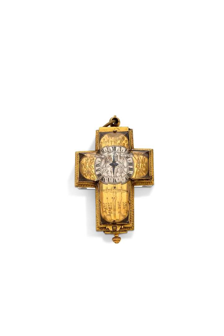 Montre en métal doré et cristal de roche, pré-balancier spiral, en forme de croix