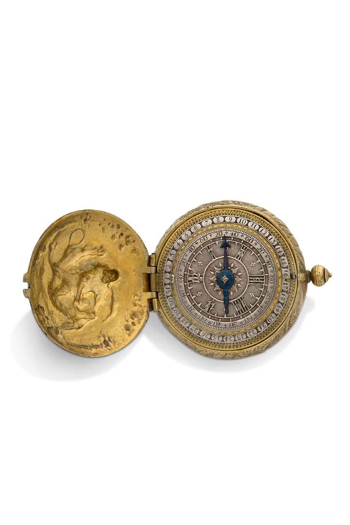 Également dans le G. H. Baillie, Watchmakers and Clockmakers of the World, p. 74, avec une description similaire à notre exemple « Fine repoussé watch with hour figures I to VI and 7 to 12 over them, Webster coll. »
