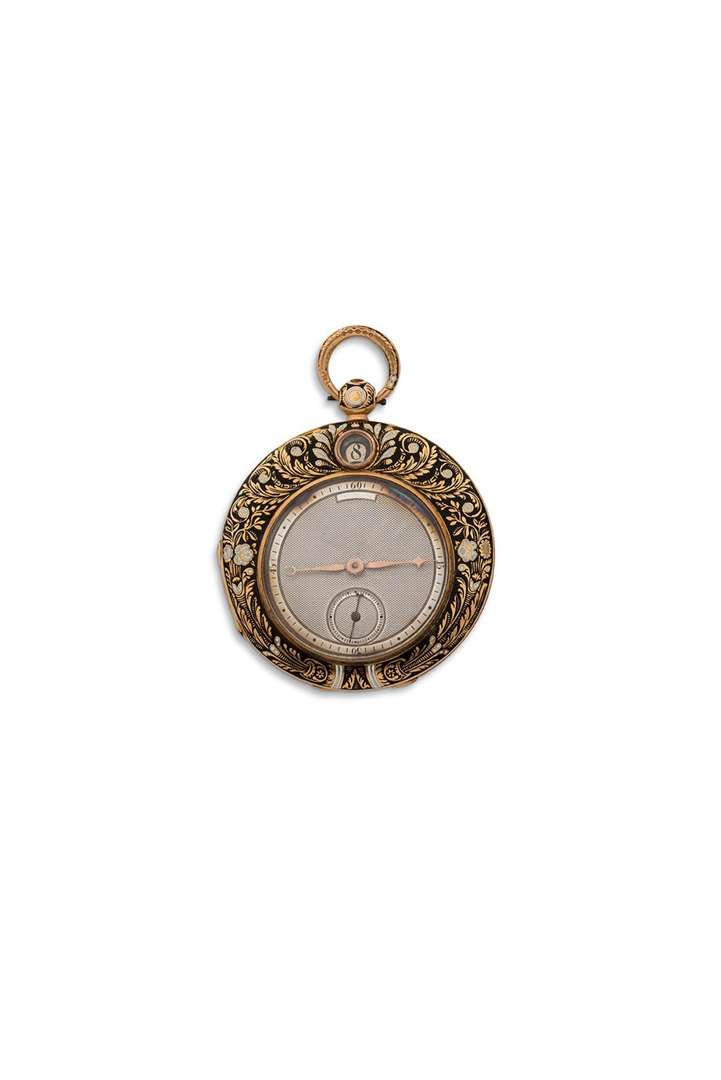 Sieur à Paris », le dos et la lunette entièrement décorés d'un motif bicolore en émail représentant un motif de fleurs et feuillages.