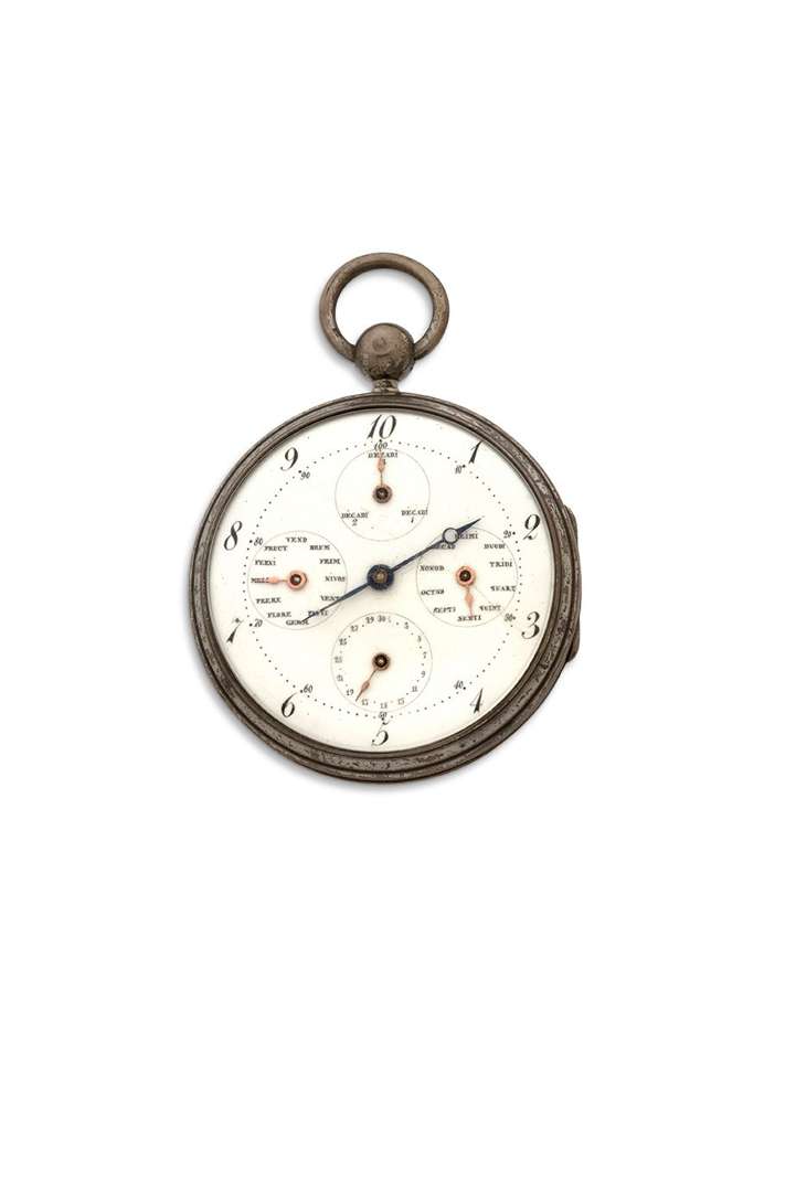Les montres qui composent les lots 65 et 66, font partie des rares pièces fabriquées sous la Révolution Française et ayant adopté le nouveau système calendaire dit « Républicain ». Le calendrier est mis en vigueur avec l'an I dès 1792 et puis l'année suivante démarre avec l'an II le 22 septembre de l'année 1793.