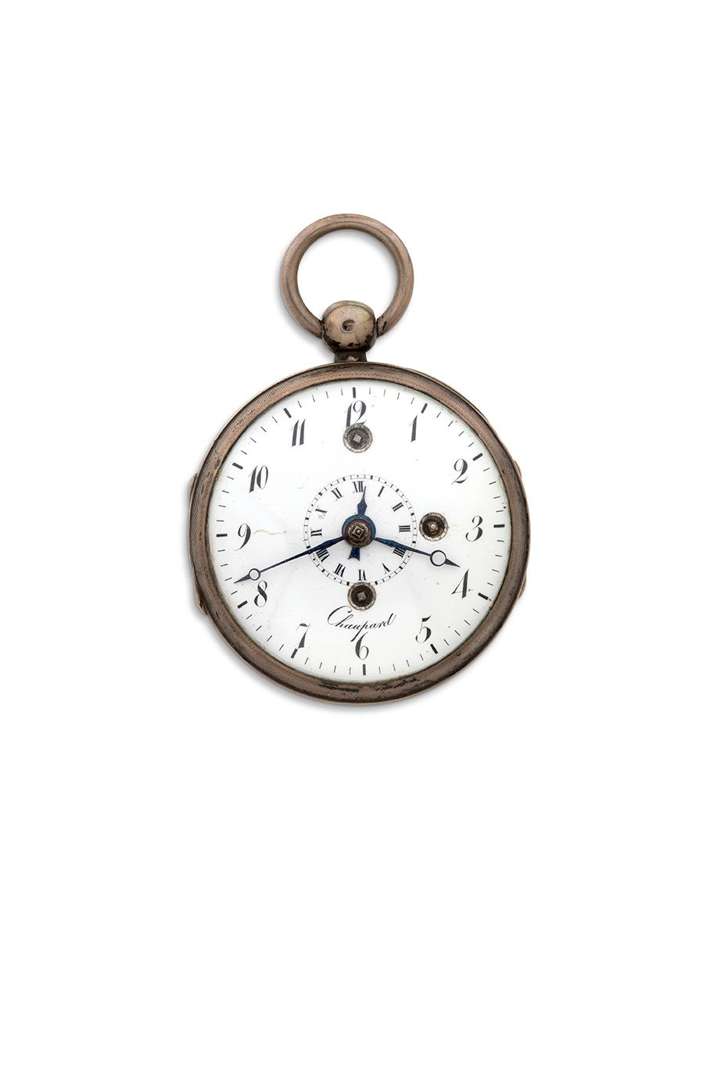 Mouvement mécanique avec remontage à clef, coq ciselé et percé, balancier spiral, disque de réglage, échappement à verge, signature sur la platine « Chaupard à Paris ».