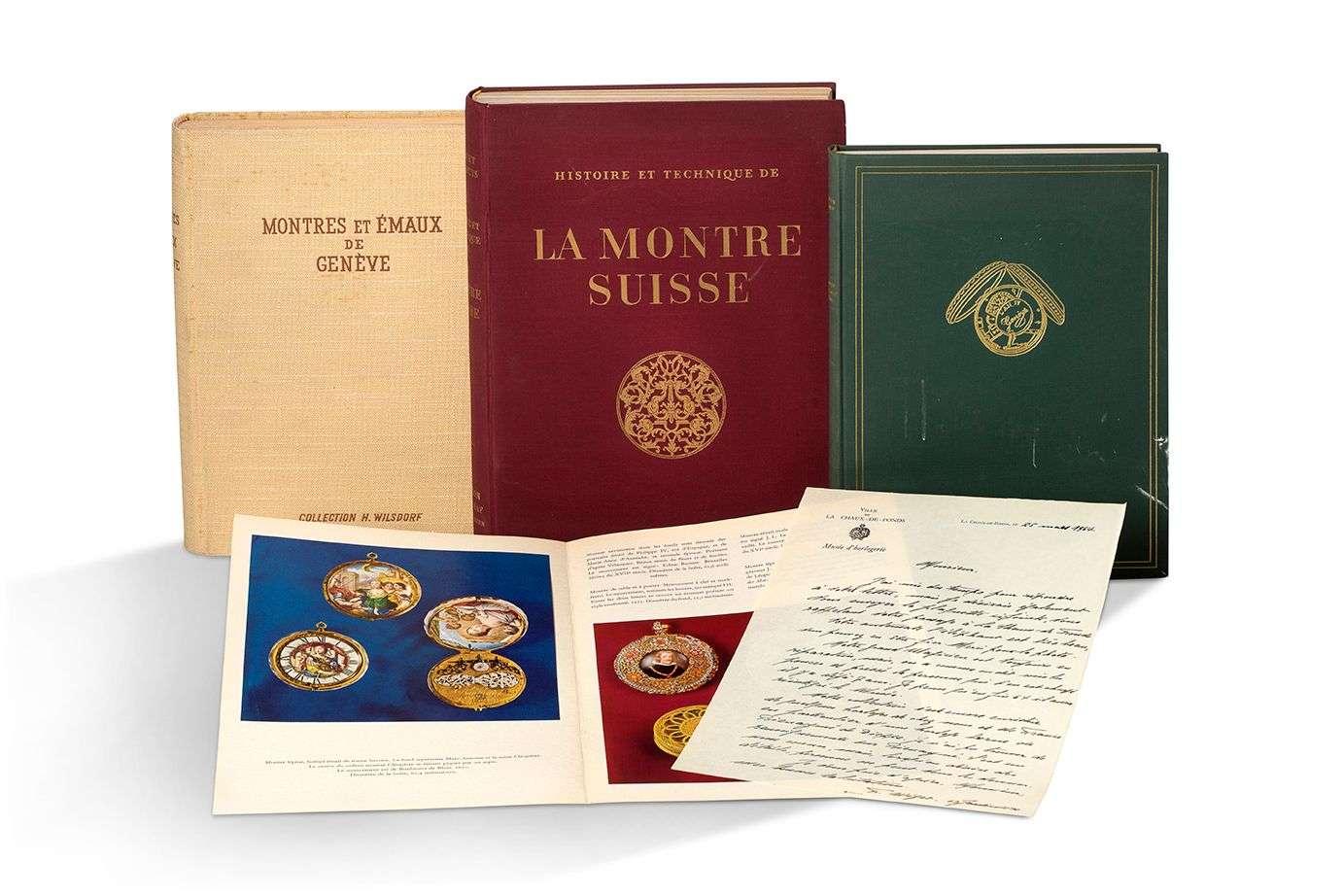 Sur le thème de l'horlogerie comprenant l'ouvrage « Montres et Emaux de Genève » sur toute la collection de montres et émaux du fondateur de la maison Rolex, Hans Wilsdorf, ainsi qu'un ouvrage de référence sur la montre suisse « Histoire et