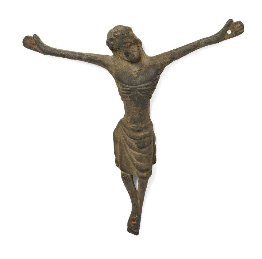 CHRIST CRUCIFIÉ en bronze, agonisant. Le dos creux.