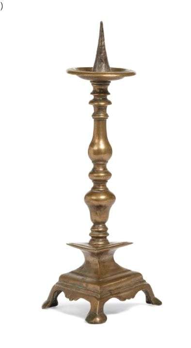 PIQUE CIERGE en bronze, le fût balustre, piètement triangulaire. Pique en