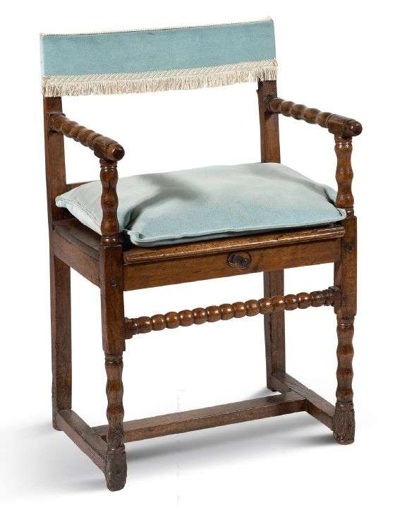 CHAISE A BRAS en bois mouluré, sculpté et tourné à entretoise en H.