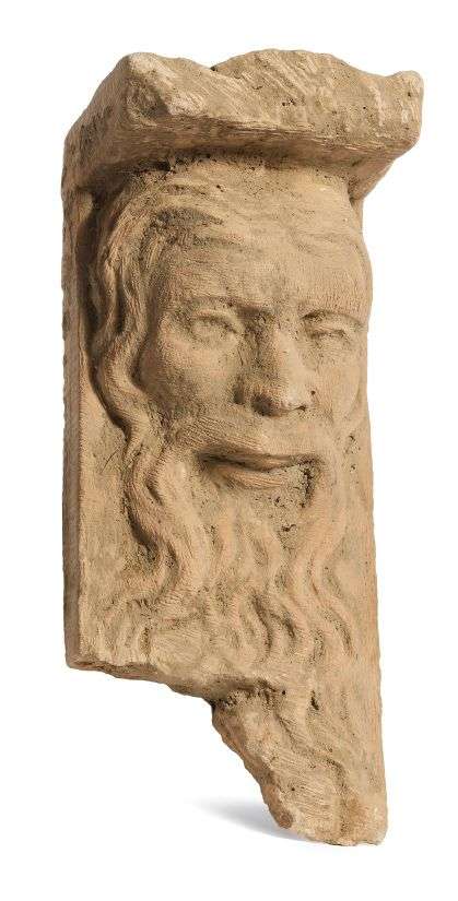 PETIT MODILLON en pierre sculptée d'une tête d'homme à longue barbe.