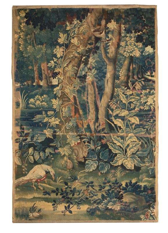 TAPISSERIE en laine à la manière des portières à décor d'un oiseau dans un entourage de végétation abondante.