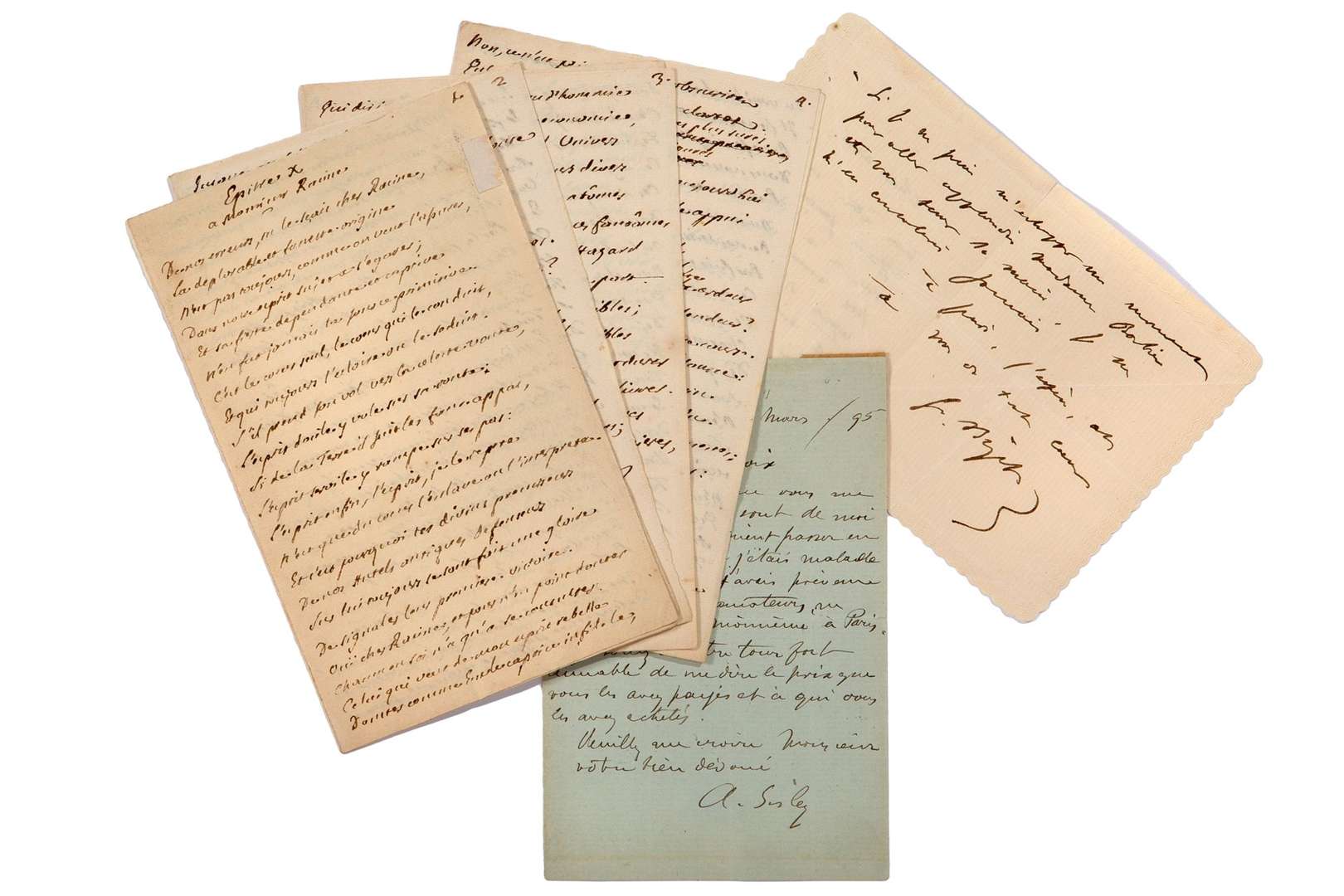 Jean-Baptiste ROUSSEAU (4 pièces), Alfred SISLEY (1 pièce), Georges BIZET (1 pièce), Henri de MONTHERLANT (18 pièces), JUAN D'Autriche (1pièce), Pierre LOUYS (1 pièce), Joseph BONAPARTE (1 pièce).