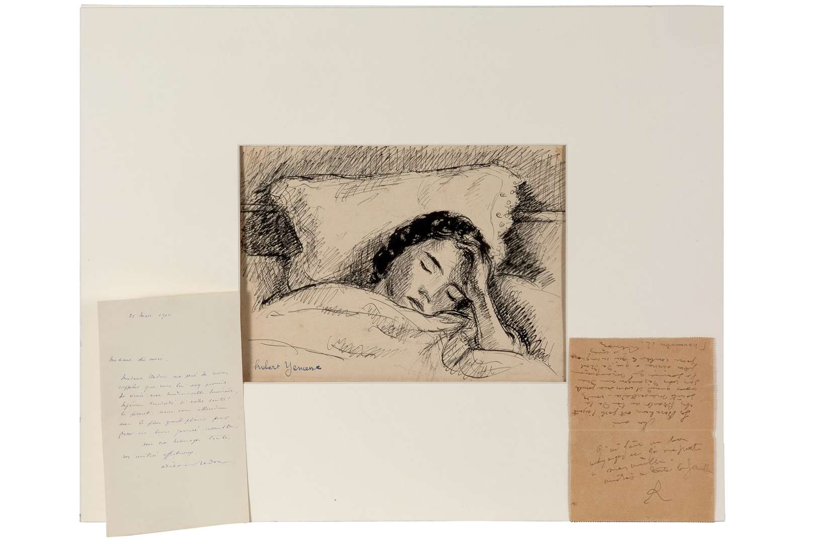 Auguste RENOIR (1 pièce), Odilon REDON (1 pièce), Charles DE GAULLE (1 pièce REV), Marquis de LAFAYETTE (1 pièce), KAVIIIK - Alain BAR A. Miles D. (in-folio, ed. Parole Gravée, 2005) et Hubert YENCESSE (un dessin à l'encre, sbg, 18,5 x 25 cm).
